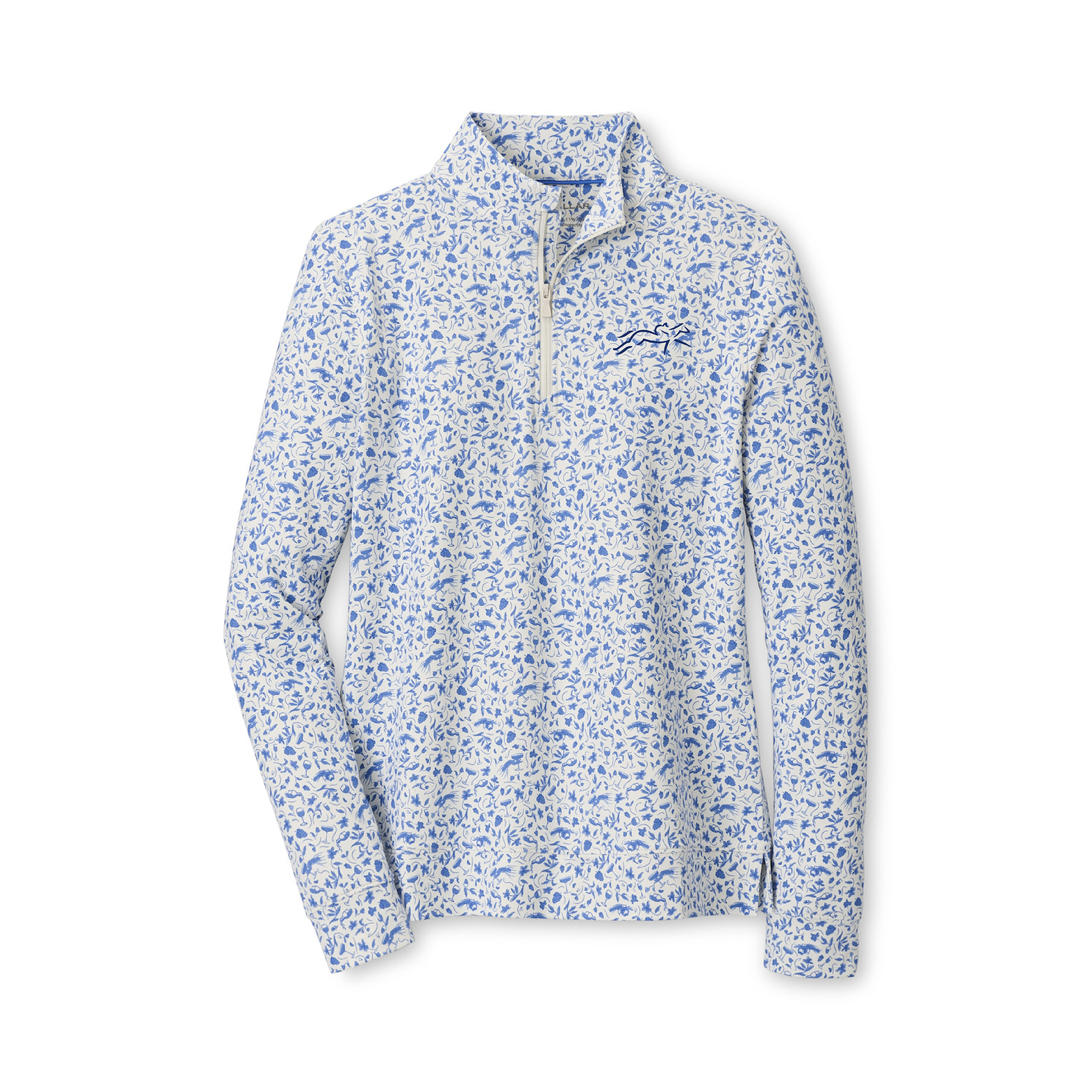 Peter MillarStay comfortable and stylish in this versatile women’s pullover, made for both performance and everyday wear. Designed with a flattering silhouette and a quarter-zip neckline, this pullover is perfect for layering in changing conditions. Finished with an elegant blue-and-white floral pattern, it brings a fresh, polished look whether you’re on the go or relaxing.