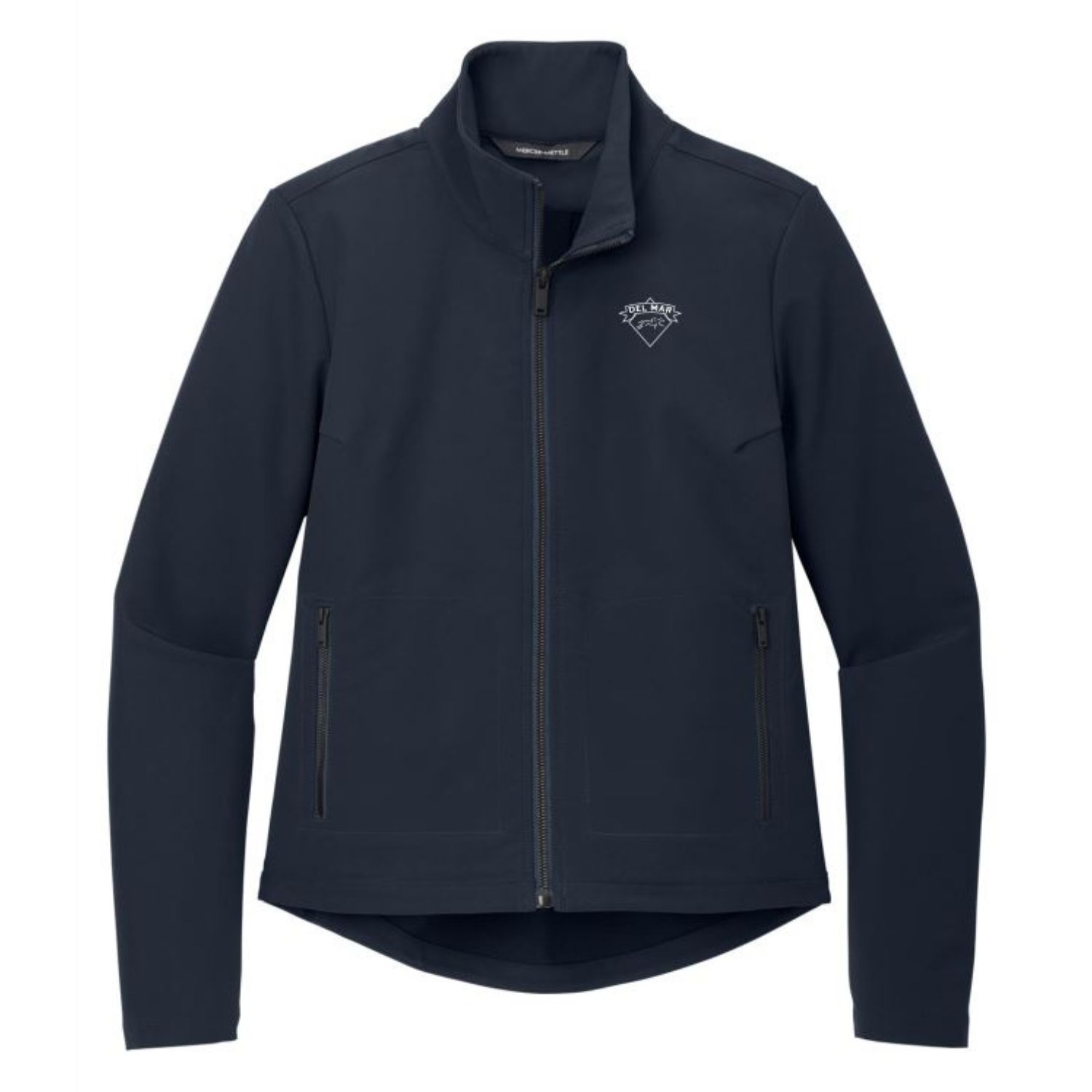Stretch Softshell Women’s Zip Jacket with Del Mar logo embroidery.